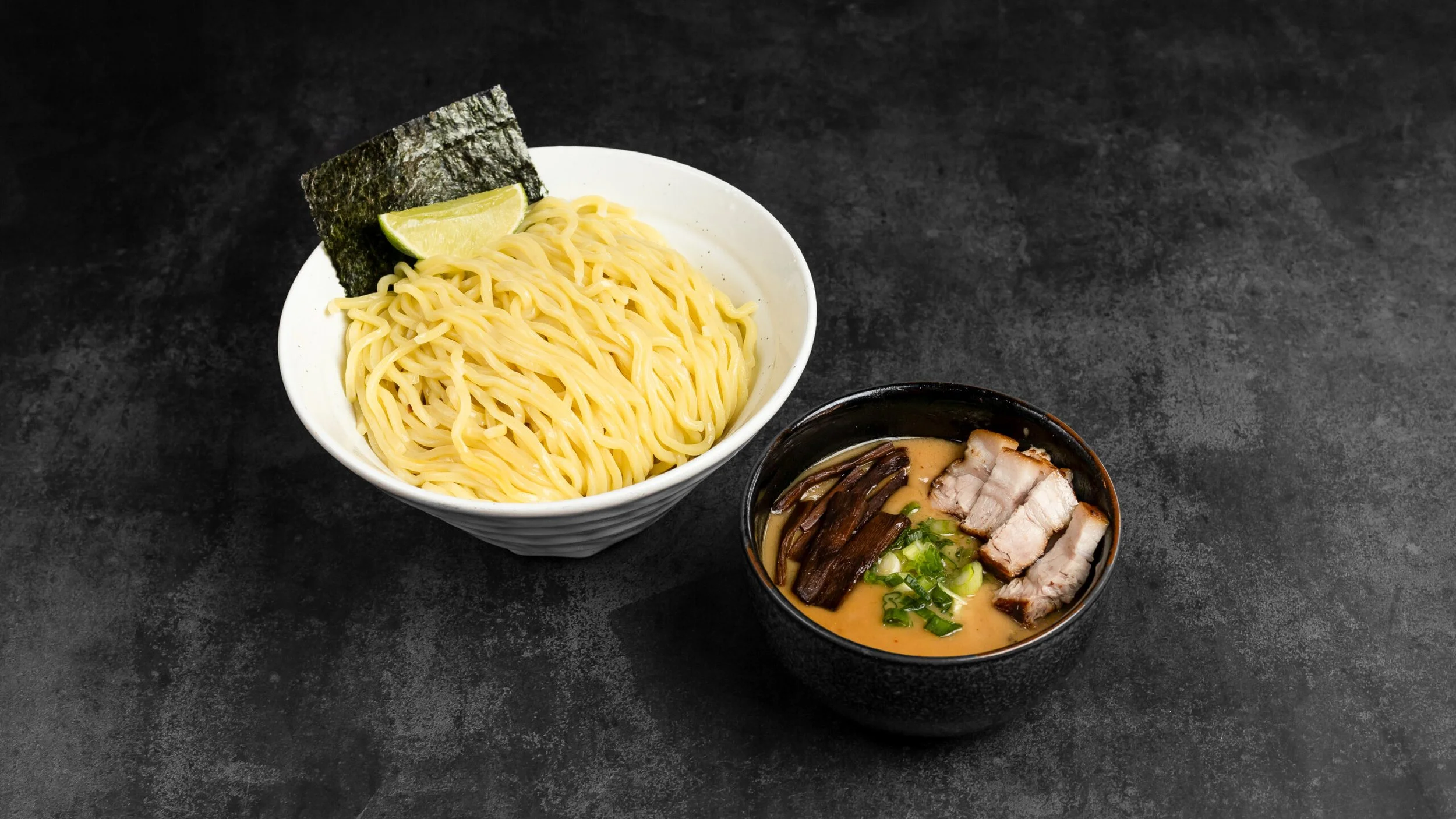 Tsukemen served with generous portion of thick cut chashu